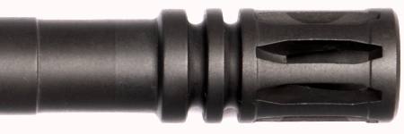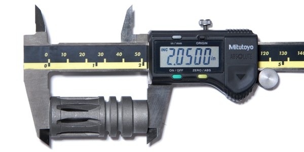 This is the central piece to creating a very authentic looking US Military 14.5 inch M4 barrel assembly which is legally 16+ inches in length, using the ATF measuring method. We designed a custom SA M16A2 compensator / flash-suppressor with reworked internal lengths and geometry, measuring 2.050 inches, while maintaining the 1.750 inch long US Military appearance. The rear section with the “extra material” allows us to accurately machine each part to its respective barrel and achieve top-dead-center timing with 50-75 ft/lbs of torque and a final legal length of approximately 16.031+ in. (fractional: just over 16 and 1/32 of an inch).