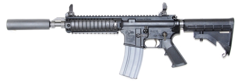 The XS6944 MOD B is a proto-type firearm based on the Colt 694X series carbine, intended for magnified-optic use only. It can also use be used with standard arming devices and/or back-up iron sights (shown). This weapon system incorporates a unique 5.56mm Colt barrel assy which has been highly modified for suppressed operations, along with a pinned gas block from the PR6940 rifle project. The Colt direct gas system and sound suppressor are carefully integrated, along with other specialty components, for long-term use without damage to the weapon itself. Consequently, this firearm will not cycle correctly without its required sound suppressor. Although developed for special operations use, this highly reliable carbine can be used in a wide variety of applications and with a nearly endless array of accessories.