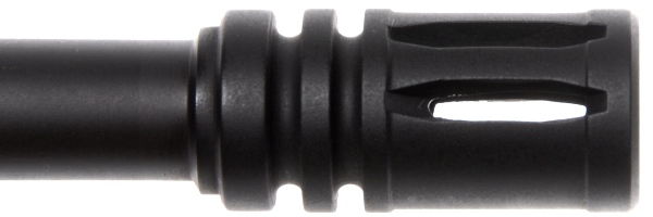 The muzzle device has been machined to align at top-dead-center, pinned/welded, turned to diameter and contoured to the Colt barrel.