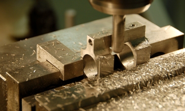 Machining proto-type gas blocks for the PR6940 at SA. Those are 4140 steel chips flying all over our beautiful, American-made Kurt D675 vise. On another machine the gas tube roll pin hole is being carefully reamed according to print. After a few more operations, the parts will be heat treated and ready for final machining and installation.
