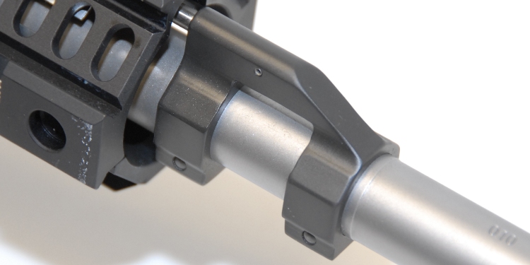 Here is a completed PR6940 gas block installed and taper-pinned to a Krieger/SA barrel assy. Notice how the faceted angles on the gas block correspond to the angles and flats machined on the Colt upper reciever rails.